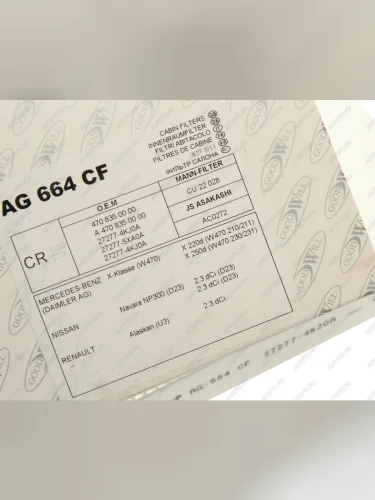 | Наименование | Фильтр воздушный салона MERCEDES X (W470) GOODWILL GOODWILL ag 664 cf |