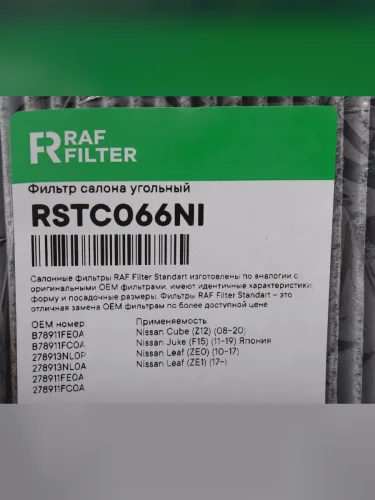 | Наименование | Фильтр воздушный салона NISSAN Cube (08-) угольный RAF FILTER |