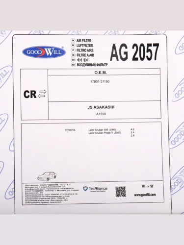 Фильтр воздушный TOYOTA Land Cruiser (21-) GOODWILL