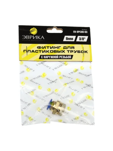 | Наименование | Фитинг для пластиковых трубок 38" 8мм с наружной резьбой ЭВРИКА |