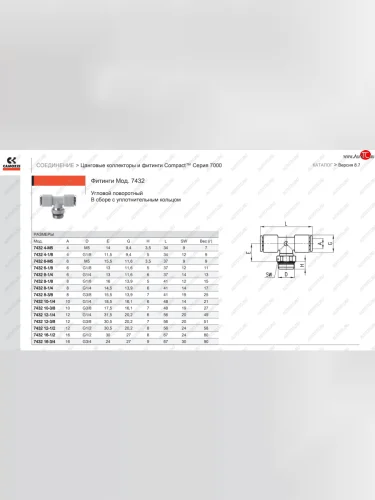 | Наименование | Фитинг тройник цанговый поворотный Camozzi 7432 10-14 Camozzi 7432 10-14 |
