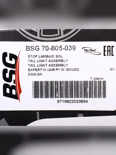 | Наименование | Фонарь задний PEUGEOT Expert CITROEN Jumpy (07-) левый BSG |