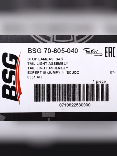 | Наименование | Фонарь задний PEUGEOT Expert CITROEN Jumpy (07-) правый BSG |