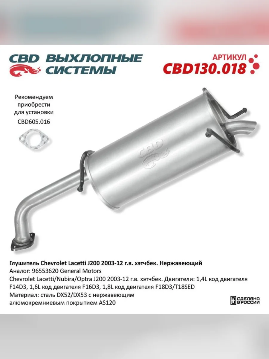| Наименование | Глушитель CHEVROLET Lacetti (05-) задняя часть CBD |