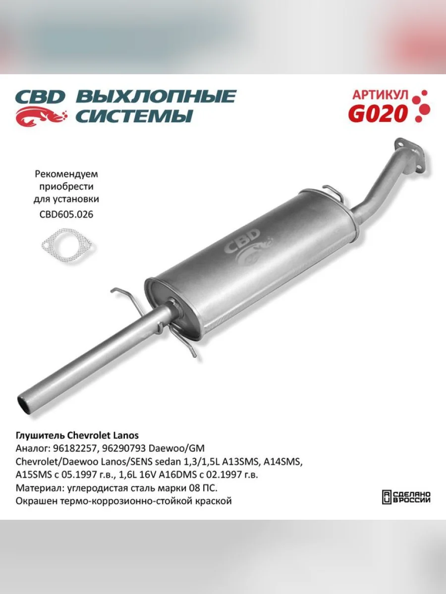 | Наименование | Глушитель CHEVROLET Lanos задняя часть CBD |