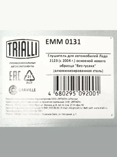 | Наименование | Глушитель ВАЗ-2123 НО короткий алюминизированный TRIALLI |