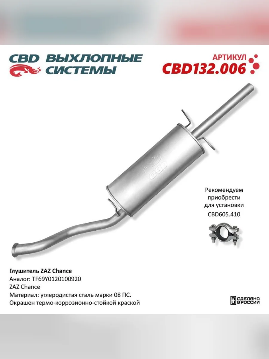 | Наименование | Глушитель ZAZ Chance задняя часть CBD |