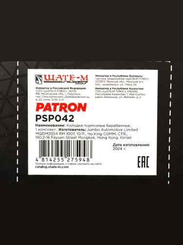 | Наименование | Колодки тормозные FORD Maverick (01-) MAZDA Premacy (99-) задние барабанные (4шт.) PATRON |