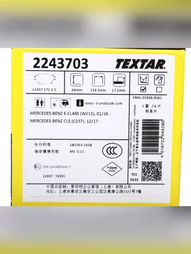 | Наименование | Колодки тормозные MERCEDES E (W213) задние (4шт.) TEXTAR |