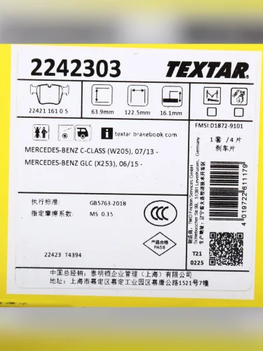 | Наименование | Колодки тормозные MERCEDES GLC (X253) (15-) задние (4шт.) TEXTAR |