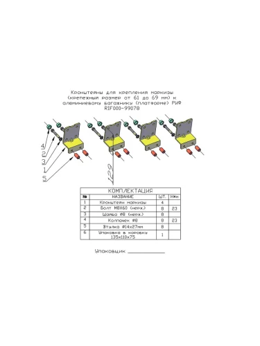 | Наименование | Кронштейны для крепления маркизы (крепежный размер от 61 до 69 мм) к алюминиевому багажнику (платформе) РИФ brand: РИФ |