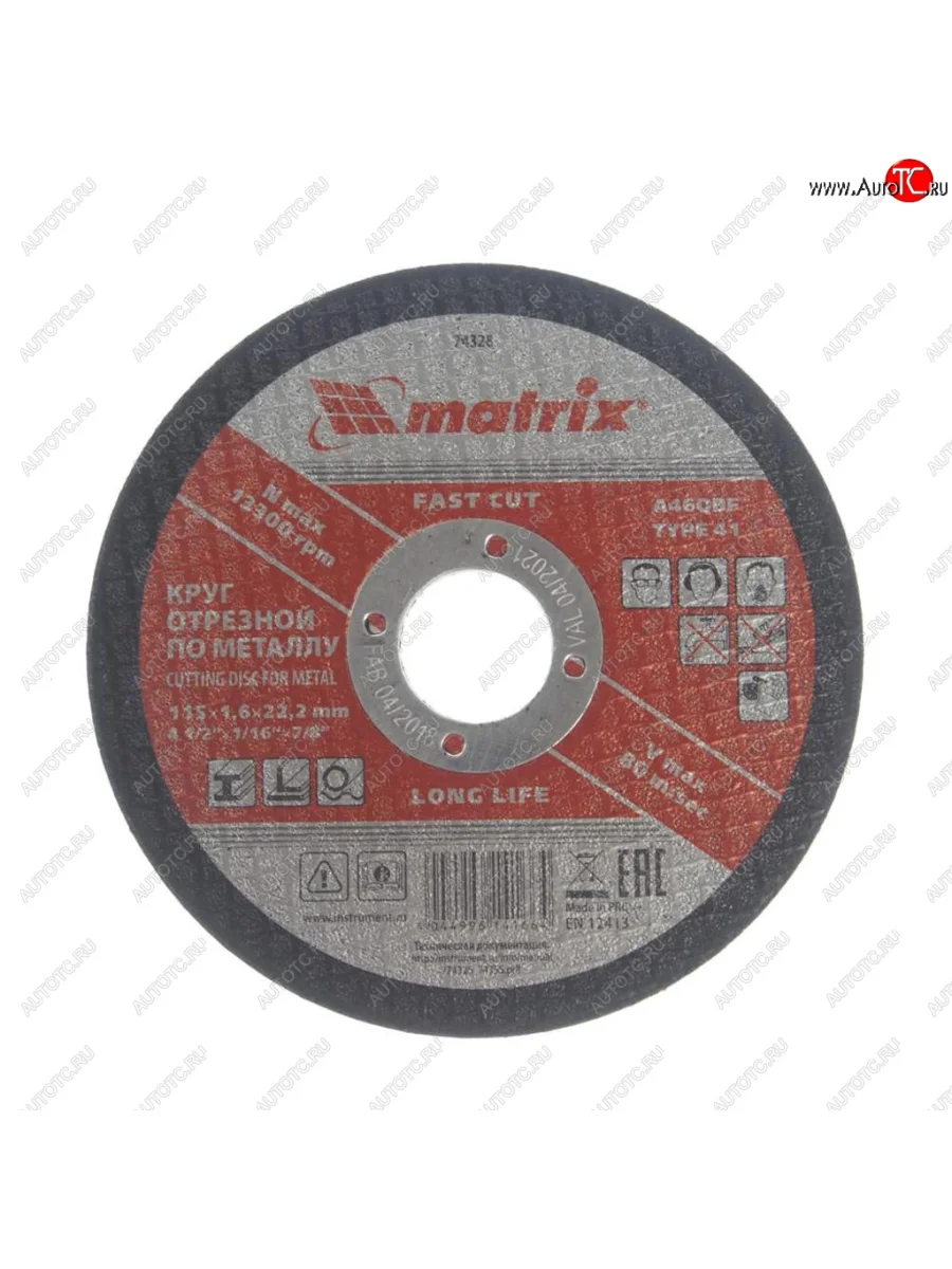 Круг отрезной по металлу 115х1.6х22мм MATRIX MATRIX 74328 MATRIX 74328