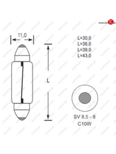 | Наименование | Лампа 12V C10W SV8.5-8 30мм 110лм TESLAFT (Россия) TESLAFT 4631111143179 |