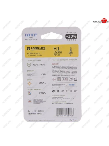 | Наименование | Лампа 12V H1 55W P14.5s +30% блистер (1шт.) Long Life MTF MTF hll1201b |