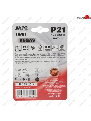 | Наименование | Лампа 12V P215W BAY15d блистер (2шт.) AVS AVS a78474s |