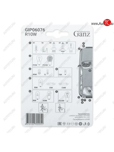 | Наименование | Лампа 12V R10W BA15s блистер (2шт.) GANZ GANZ gip06076 |