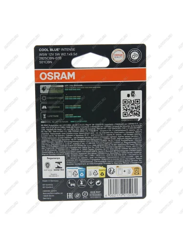 | Наименование | Лампа 12V W5W T10 W2.1x9.5d 4000K блистер (2шт.) Cool Blue Intense NextGen OSRAM OSRAM 2825cbn-02b |