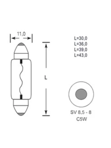 | Наименование | Лампа 24V C5W SV8.5-8 30мм 40лм TESLAFT (Россия) |