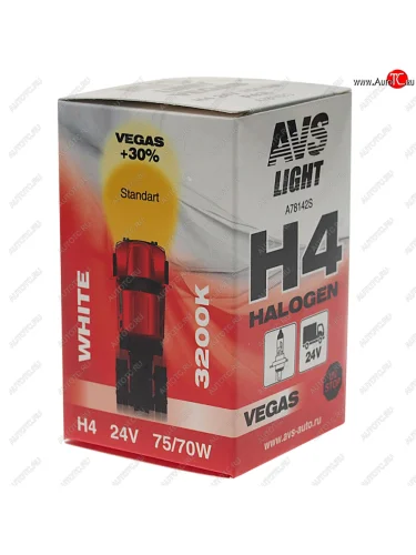 | Наименование | Лампа 24V H4 7570W P43t AVS AVS a78142s |