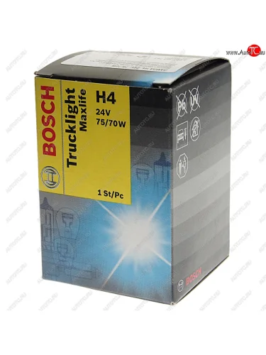 | Наименование | Лампа 24V H4 7570W P45t Trucklight Maxlife BOSCH BOSCH 1987302742 |