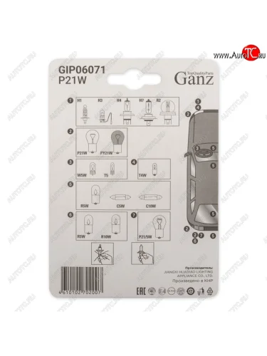 | Наименование | Лампа 24V P21W BA15s блистер (2шт.) GANZ GANZ gip06071 |