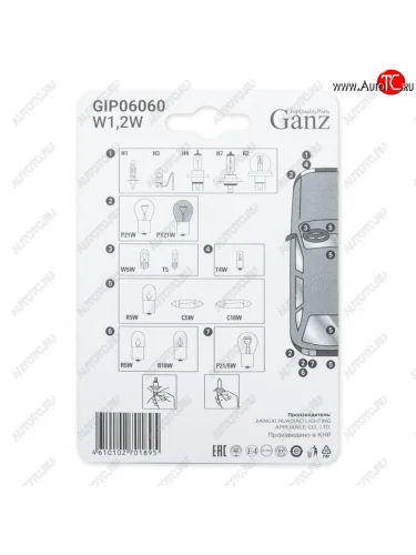 | Наименование | Лампа 24V W1.2W W2x4.6d блистер (2шт.) GANZ GANZ gip06060 |