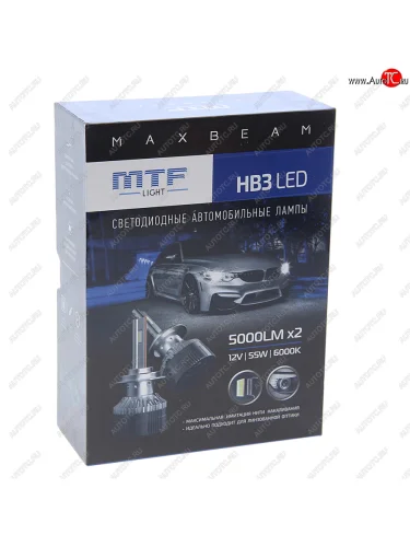 | Наименование | Лампа светодиодная 12V HB3 P20d (2шт.) MTF MTF mbb3k6 |