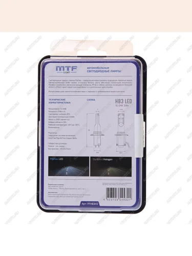 | Наименование | Лампа светодиодная 12V HB3 P20d бокс (2шт.) MTF MTF pfhb3k5 |