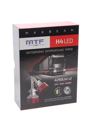 | Наименование | Лампа светодиодная 24V H4 P43t бокс (2шт.) MTF MTF mb04k6-24 |