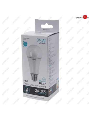 | Наименование | Лампа светодиодная E27 A67 25W (200W) 220V теплый GAUSS GAUSS 73225 |