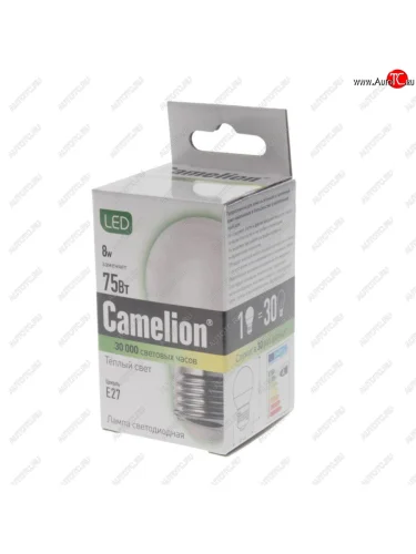 | Наименование | Лампа светодиодная E27 G45 8W (75W) 220V теплый BasicPower CAMELION CAMELION led8-g45830e27 |