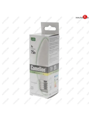| Наименование | Лампа светодиодная E27 С35 8W (75W) 220V теплый BasicPower CAMELION CAMELION led8-c35830e27 |