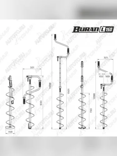 Ледобур ТОНАР BURAN 150L левое вращение, цельнотянутый шнек lb-150l