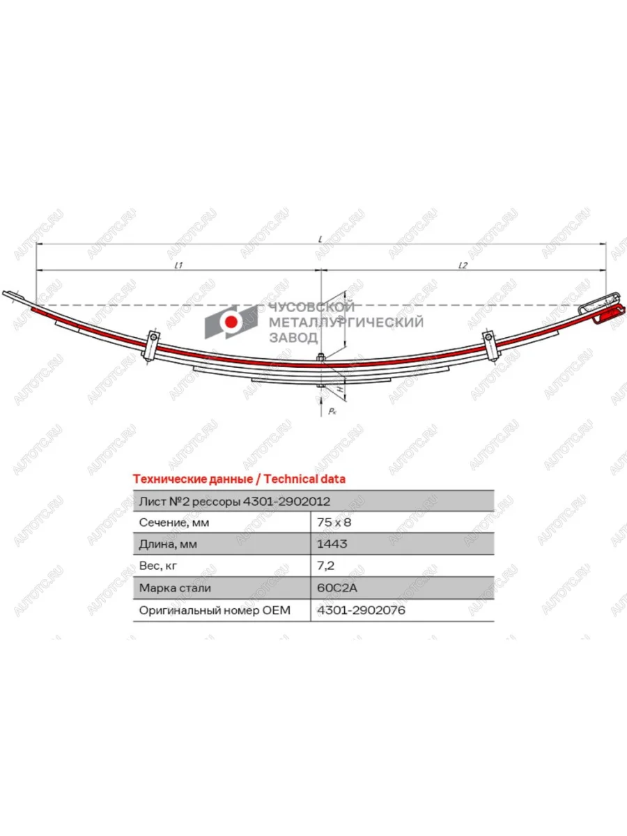 | Наименование | Лист рессоры ГАЗ-4301 передней №2 L=1443мм ЧМЗ ЧМЗ 4301-2902076 |