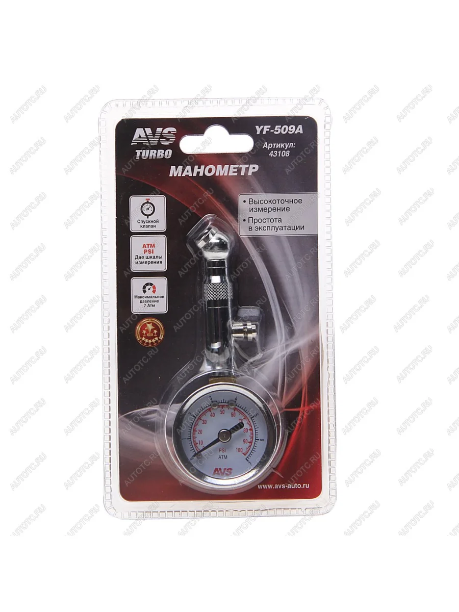 | Наименование | Манометр шинный механический 7атм. AVS |