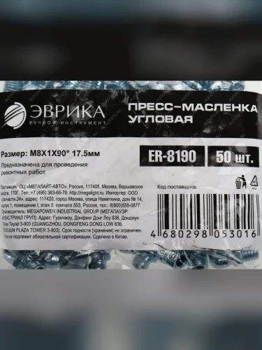 | Наименование | Масленка угловая 90 градусов М8х1 ЭВРИКА ЭВРИКА er-8190 |