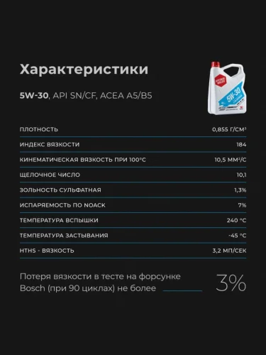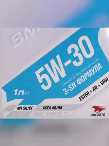 | Наименование | Масло моторное 3-SN A5B5 5W30 синт. 1л ВМП-АВТО |