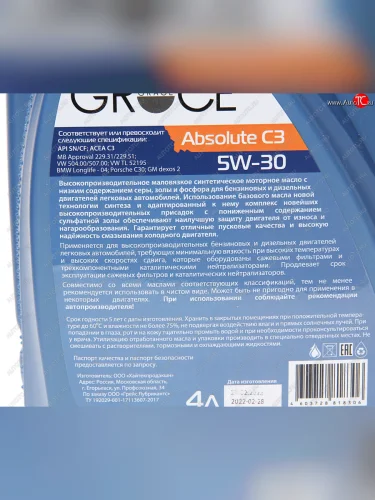 Масло моторное ABSOIUTE C3 5W30 синт.4л GRACE GRACE 4603728818306