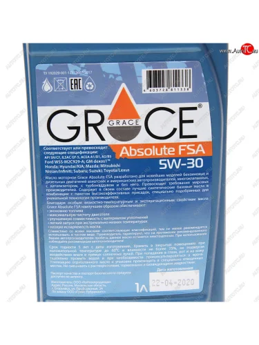 | Наименование | Масло моторное ABSOIUTE FSA 5W30 синт.1л GRACE GRACE 4603728811338 |