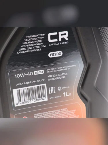 | Наименование | Масло моторное CARVILLE RACING FS200 SNCFA3B4 10W40 синт.1л |