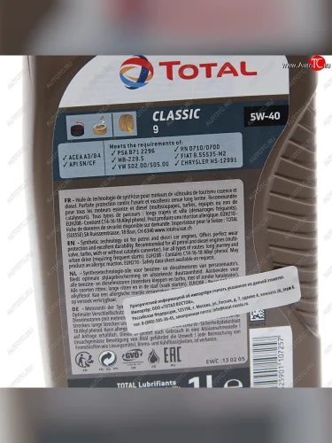 | Наименование | Масло моторное CLASSIC 9 5W40 синт.1л TOTAL TOTAL 213730 |