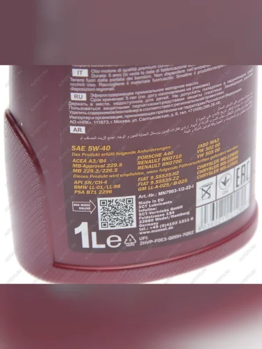 | Наименование | Масло моторное ELITE 5W40 SNA3B4 синт.1л 7903 MANNOL MANNOL 1005 |
