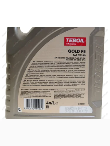 Масло моторное GOLD FE 5W30 синт.4л TEBOIL TEBOIL 3470594