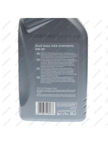 | Наименование | Масло моторное HELIX HX-8 5W30 A3B4SN синт.1л SHELL |