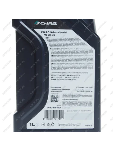 | Наименование | Масло моторное N-Force Special MS SNCFC3 5W30 синт.1л CNRG CNRG cnrg-264-0001 |