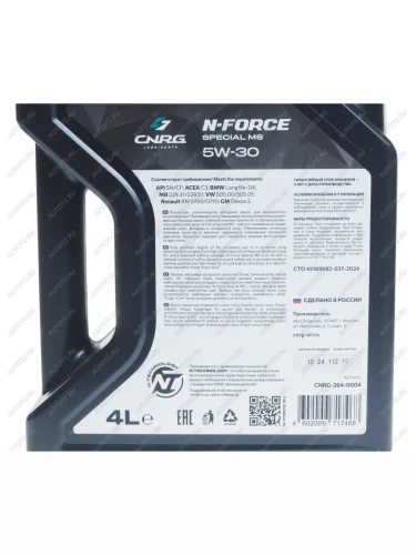 | Наименование | Масло моторное N-Force Special MS SNCFC3 5W30 синт.4л CNRG CNRG cnrg-264-0004 |