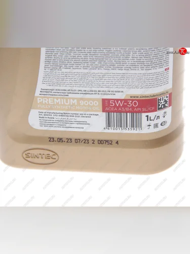 | Наименование | Масло моторное PREMIUM 9000 A3B4 5W30 синт.1л SINTEC SINTEC 600102 |