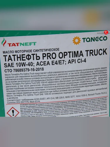 Масло моторное Pro Optima Truck 10W40 п/синт.20л ТАТНЕФТЬ ТАТНЕФТЬ 31025 ТАТНЕФТЬ 31025