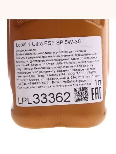 | Наименование | Масло моторное Ultra ESF SP 5W30 синт.1л LOPAL |