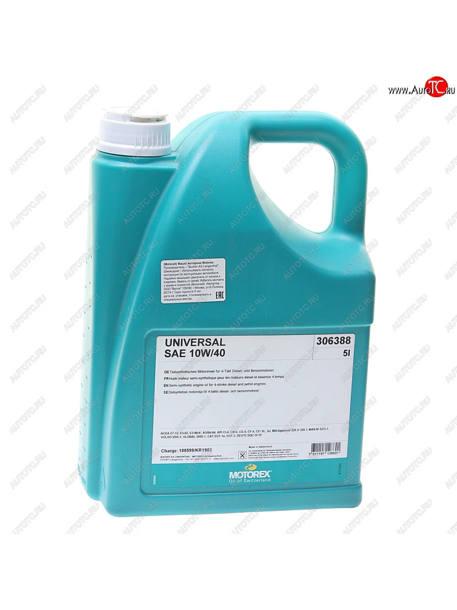 | Наименование | Масло моторное Universal 10W40 E5E7 псинт.5л MOTOREX MOTOREX 306338 |